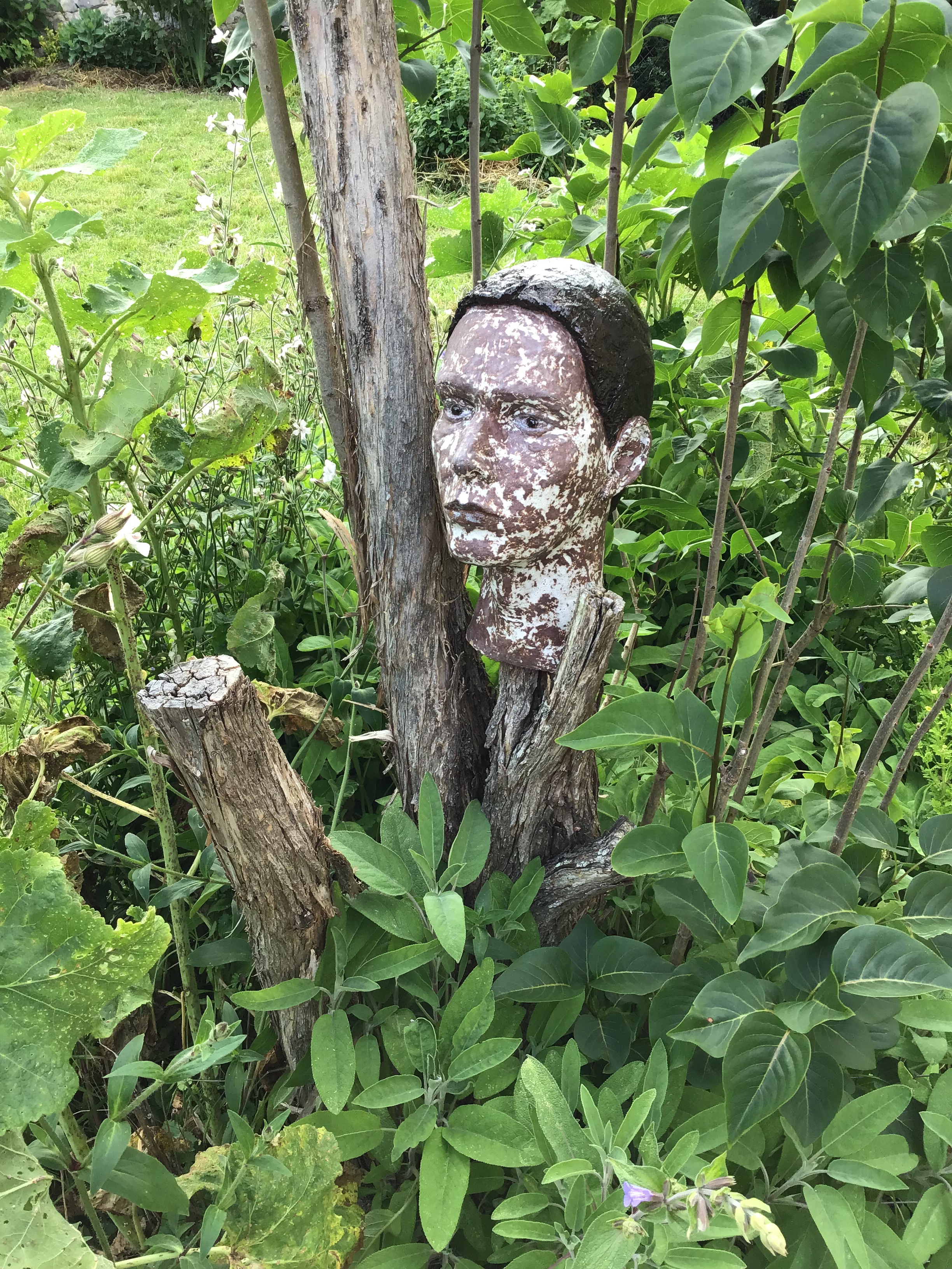 Sculpture en grès brun, émaillé blanc mat, brun brillant, pour agrémenter le jardin, orner une pièce de la maison. Hauteur 35 cm, largeur 17 cm. Contact : 06 16 59 89 90 fabricebequetcreations@gmail.com