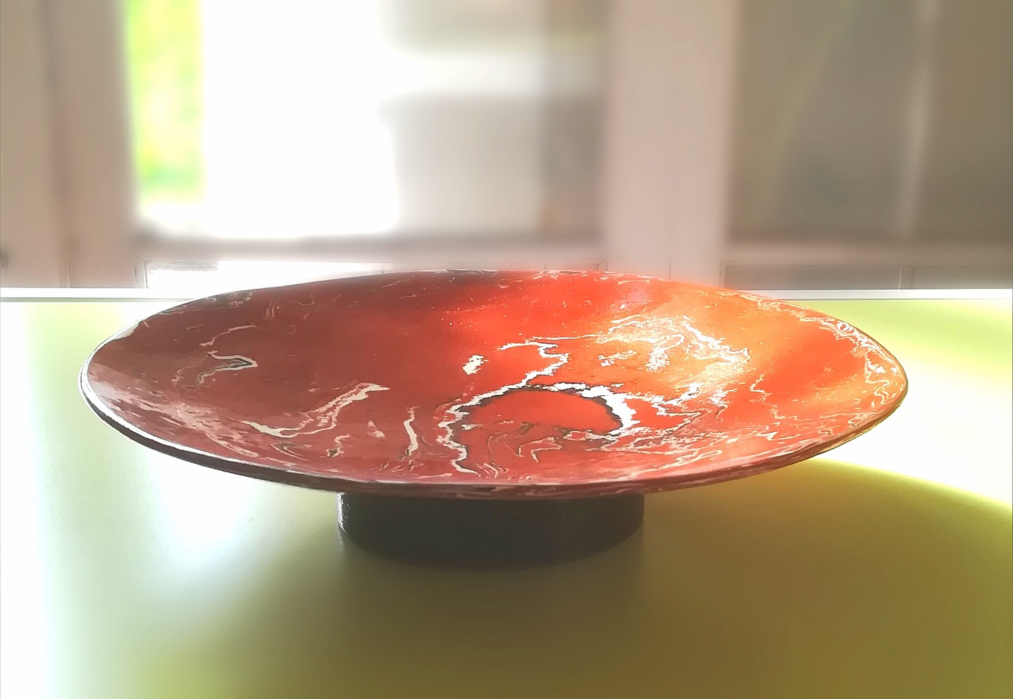 Généreuse et élégante dans sa géographie de faïence telle un hommage. Renseignements : 06 16 59 89 90 / +33 6 16 59 89 90 fabricebequetcreations@gmail.com Diamètre 33 cm, hauteur 6,5 cm Fait main en France