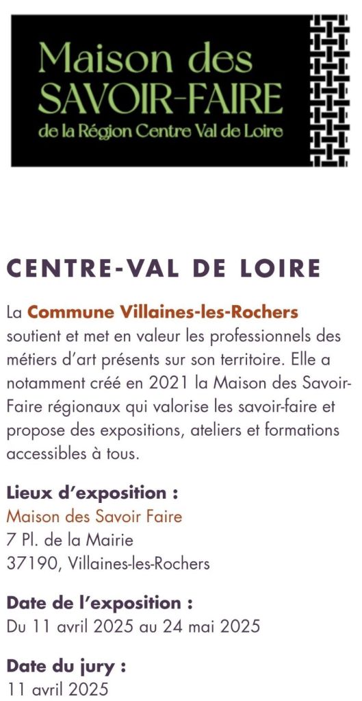 À découvrir du 11 avril au 24 mai 2025 à la Maison des Savoir-faire de Villaines les Rochers (37).