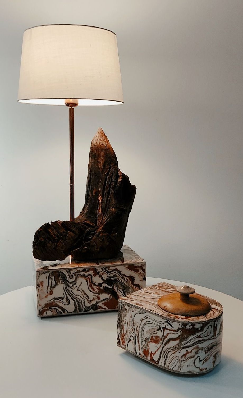 Lampe numéro 2, Esprit de terrefaïence et bois naturel, métal brossé. Pièce unique Fabrice Béquet Créations