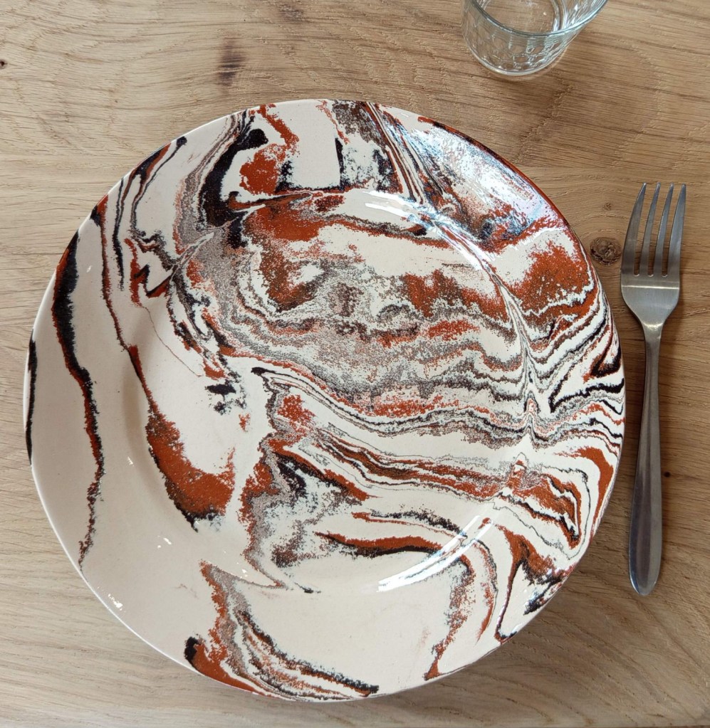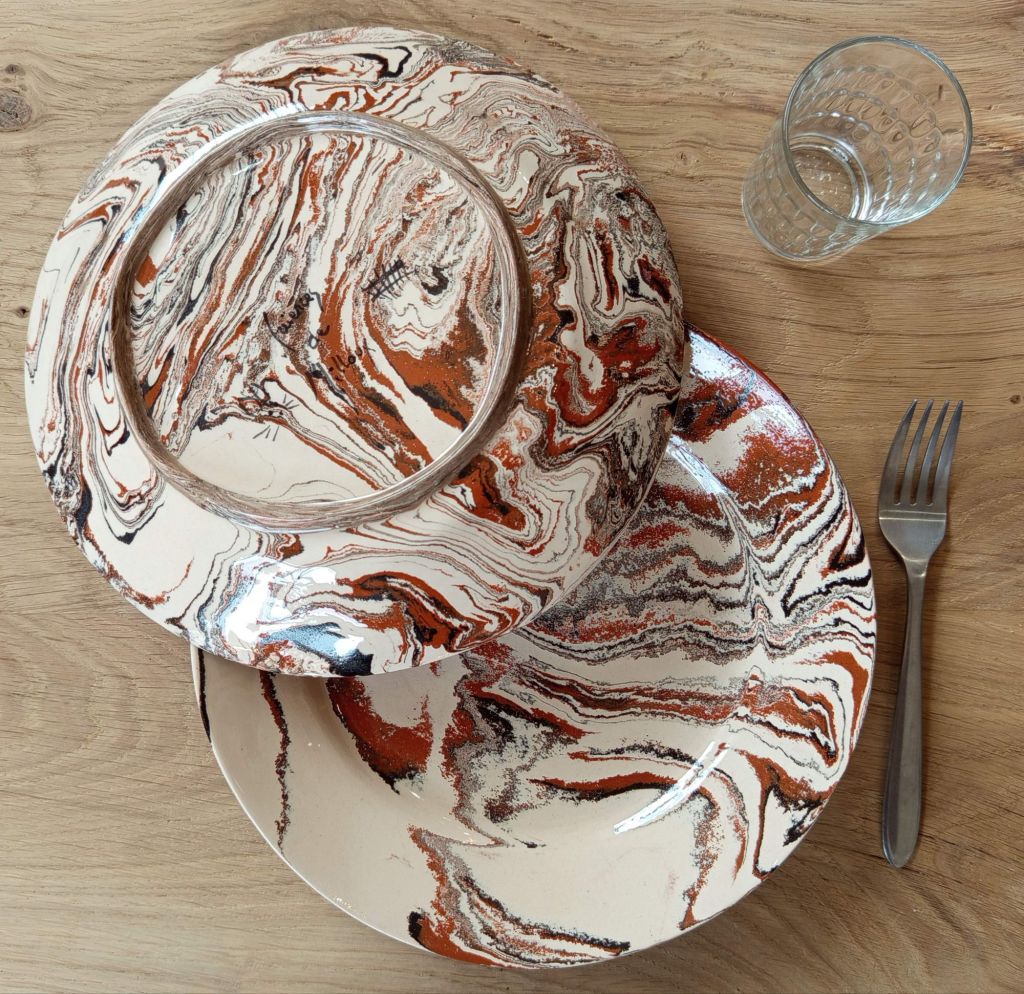 Assiettes plates Élégance. Coloris Springtime léger. Fabrice Béquet Créations – Faïences de Milloux 2025