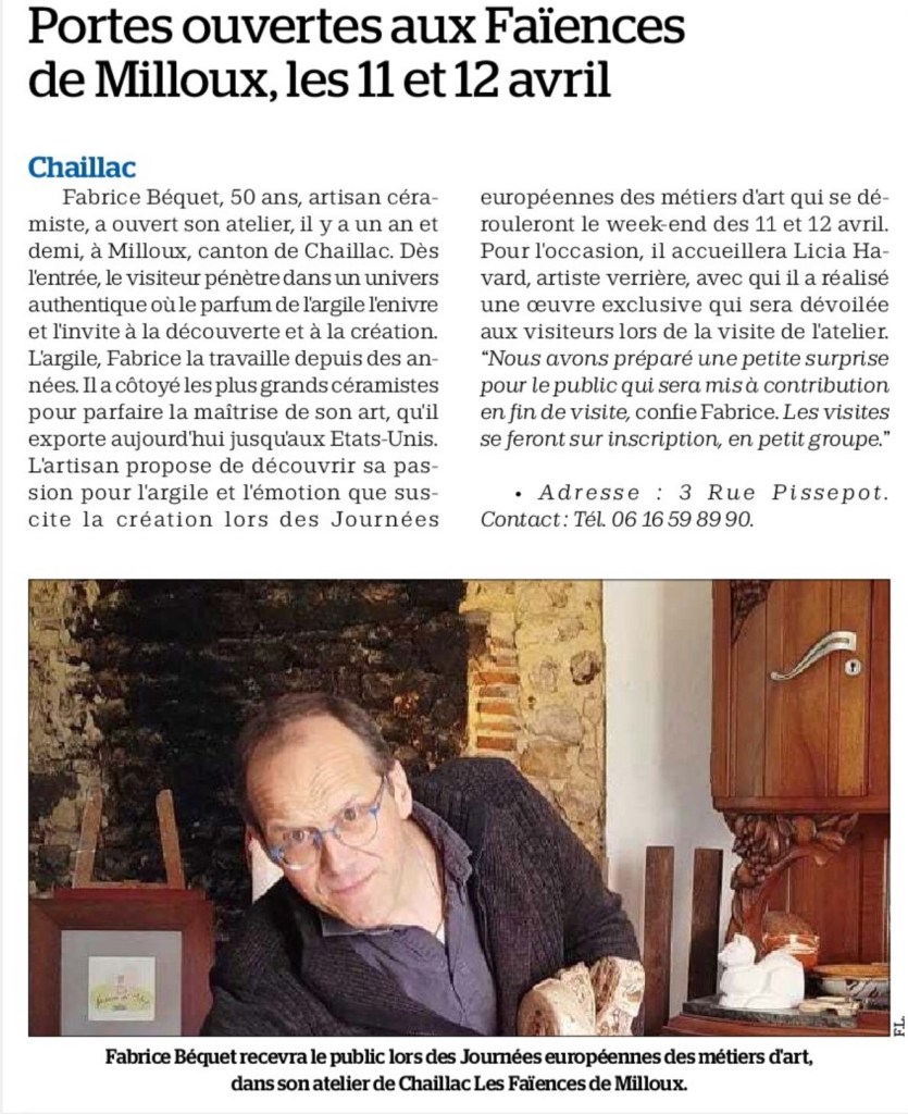 JEMA 2026 – Les Faïences de Milloux ouvrent leurs portes les 11 et 12 avril 2026